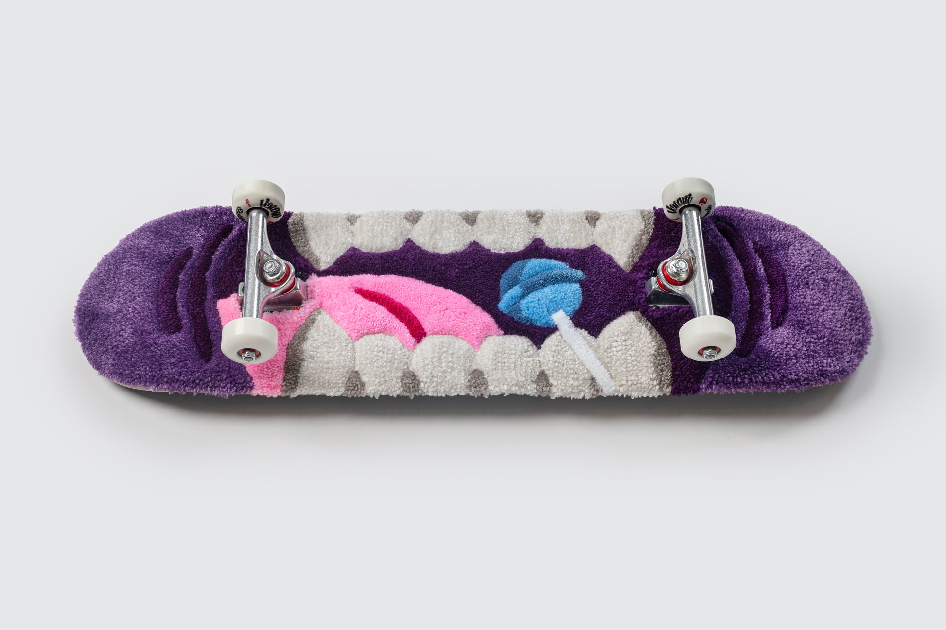 The Rugboard combines a low-pile tufted rug design mounted on a complete skateboard deck including trucks and wheels. It's a one-of-a-kind fusion of street art, handcrafted textiles and skate culture, all in one package.